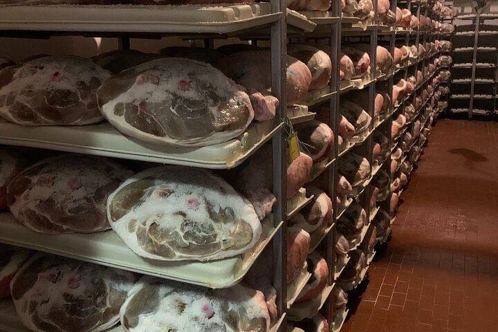 We explore a prosciutto factory to explore the production process, followed by tasting at the end.
